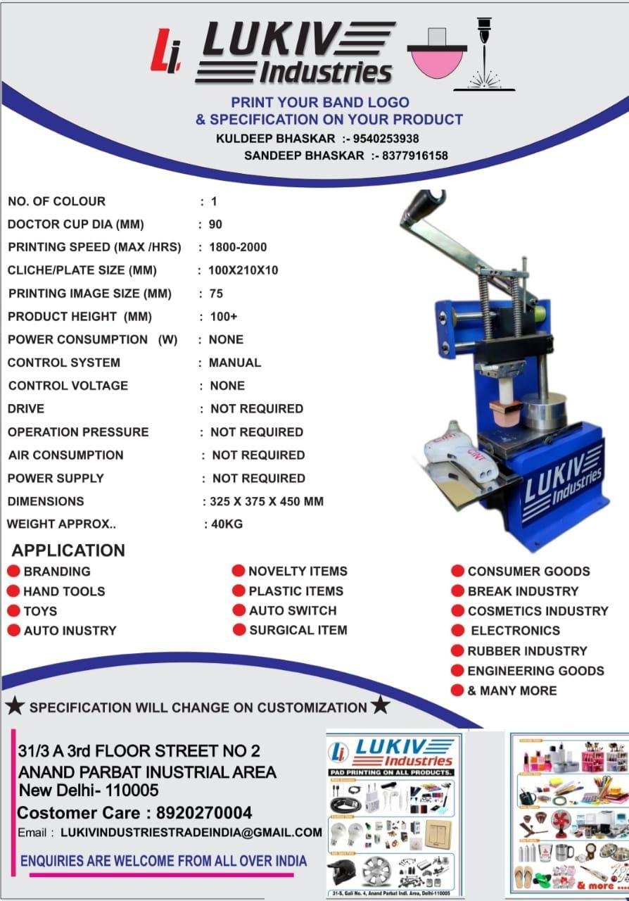 We are one of the leading Manual Pad Printing Machine Manufacturers in Anand Parbat offering best price Manual Pad Printing Machine in Anand Parbat. Here at Lukiv Industries We are providing Customize solution for all your Manual Pad Printing Machine in Anand Parbat Need. Feel free to call us anytime for any kind of your Manufacturer of Manual Pad Printing Machine in Anand Parbat Requirement. Picking up the right Manual Pad Printing Machine in Anand Parbat Manufacturers for you can become little bit complicated. Not anymore! Bring the wide collection of Manual Pad Printing Machine in Anand Parbat that is perfect for your business. As we are the Best Manual Pad Printing Machine in Anand Parbat Manufacturers we provide you the best quality material at reasonable price. Inspired by the current passion of the people towards quality, this will definitely enhance the Beauty of your Space.